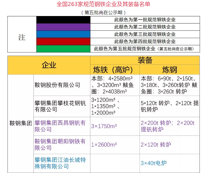 《中國冶金報》、中國鋼鐵新聞網(wǎng)將公示調整后的263家規(guī)范鋼鐵企業(yè)名單及其裝備整理如下(注:本次公示擬變更裝備和擬變更企業(yè)名稱尚未列入表格),僅供參考。