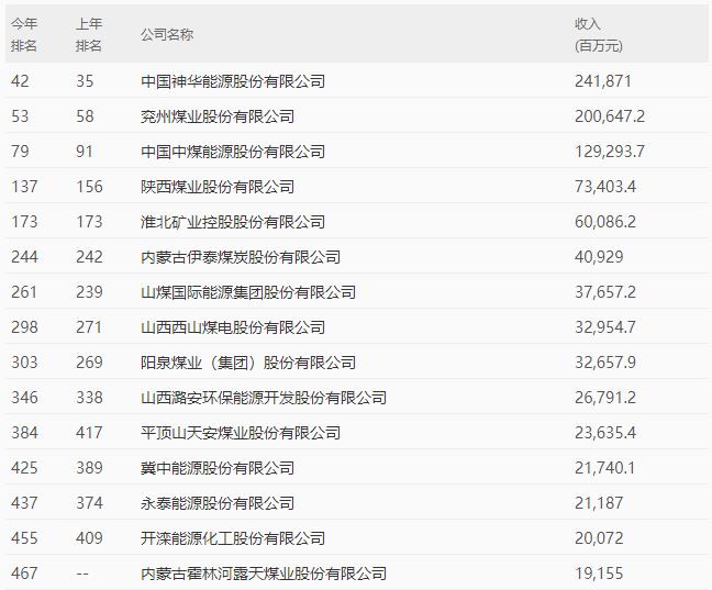 15家煤炭上市公司上榜2020財富中國500強