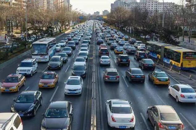△行駛在北京街道上的車輛