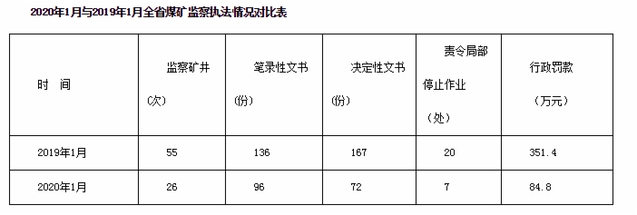 1月份,全省煤礦安全監(jiān)察機(jī)構(gòu)共監(jiān)察礦井26礦次,制作筆錄性文書96份,決定性文書72份,責(zé)令局部停止作業(yè)7處,行政罰款84.8萬元。