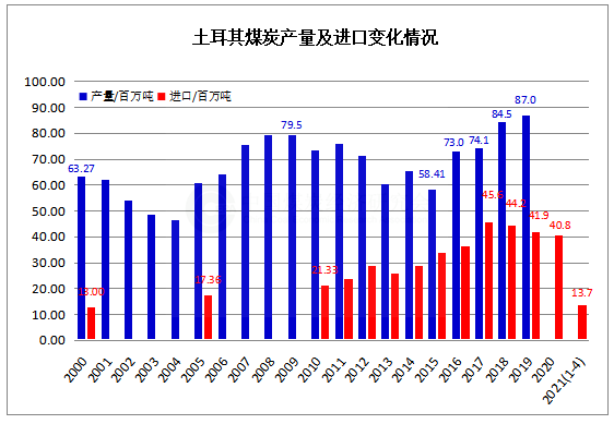 2021年1-4月土耳其煤炭進(jìn)口同比增長12.9%