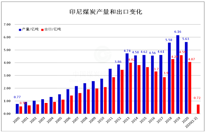 據(jù)印尼國家統(tǒng)計(jì)局(BPS-Statistics Indonesia)發(fā)布的統(tǒng)計(jì)數(shù)據(jù), 2020年,印尼煤炭出口量為4.07億噸,比2019年減少5236萬噸,下降11.4%。最新發(fā)布的統(tǒng)計(jì)數(shù)據(jù)顯示, 2021年2月份印尼煤炭出口3380.3萬噸,同比下降8.6%,環(huán)比下降11.6%。1-2月份,煤炭出口量累計(jì)為7205.8萬噸,比2020年同期下降4.2%?!?/div>