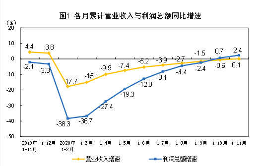 1—11月份,全國(guó)規(guī)模以上工業(yè)企業(yè)實(shí)現(xiàn)利潤(rùn)總額57445.0億元,同比增長(zhǎng)2.4%(按可比口徑計(jì)算,詳見附注二),增速比1—10月份提高1.7個(gè)百分點(diǎn)。 1—11月份,規(guī)模以上工業(yè)企業(yè)中,國(guó)有控股企業(yè)實(shí)現(xiàn)利潤(rùn)總額14456.9億元,同比下降4.9%;股份制企業(yè)實(shí)現(xiàn)利潤(rùn)總額40580.1億元,增長(zhǎng)2.3%;外商及港…