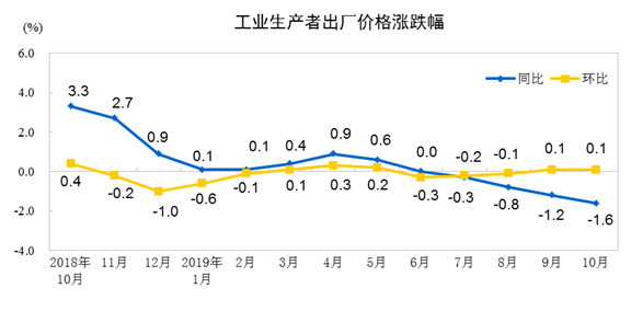 2019年10月份工業(yè)生產(chǎn)者出廠價(jià)格同比下降1.6%